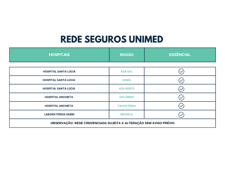 A rede credenciada do plano  de saúde Seguros Unimed é criteriosamente selecionada para proporcionar aos beneficiários acesso a uma ampla variedade de serviços de saúde de alta qualidade. Comprometida com a excelência, a Unity estabelece parcerias estratégicas com hospitais, clínicas e profissionais de saúde de renome. A rede credenciada reflete o comprometimento da Seguros em oferecer cuidados abrangentes e confiáveis, assegurando que os beneficiários tenham acesso a tratamentos e serviços de saúde alinhados aos mais elevados padrões de qualidade. Com o plano de saúde Seguros Unimed, confia-se em uma rede sólida e confiável para atender às necessidades de saúde dos