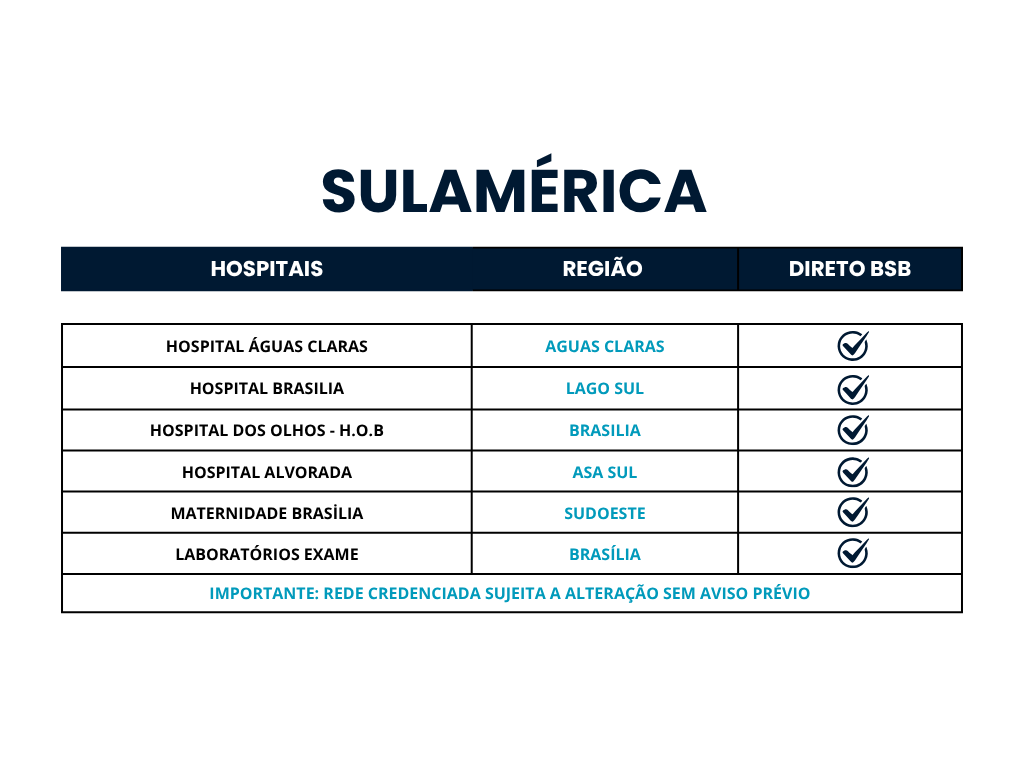 Com uma forte presença em Brasília, a SulAmérica proporciona acesso a uma vasta rede de hospitais, clínicas e profissionais de saúde de excelência, garantindo que os beneficiários recebam atendimento de alta qualidade em todos os momentos. O plano SulAmérica se destaca por sua cobertura abrangente e pela facilidade de acesso aos seus serviços, que incluem consultas, exames, internações, cirurgias e muito mais.